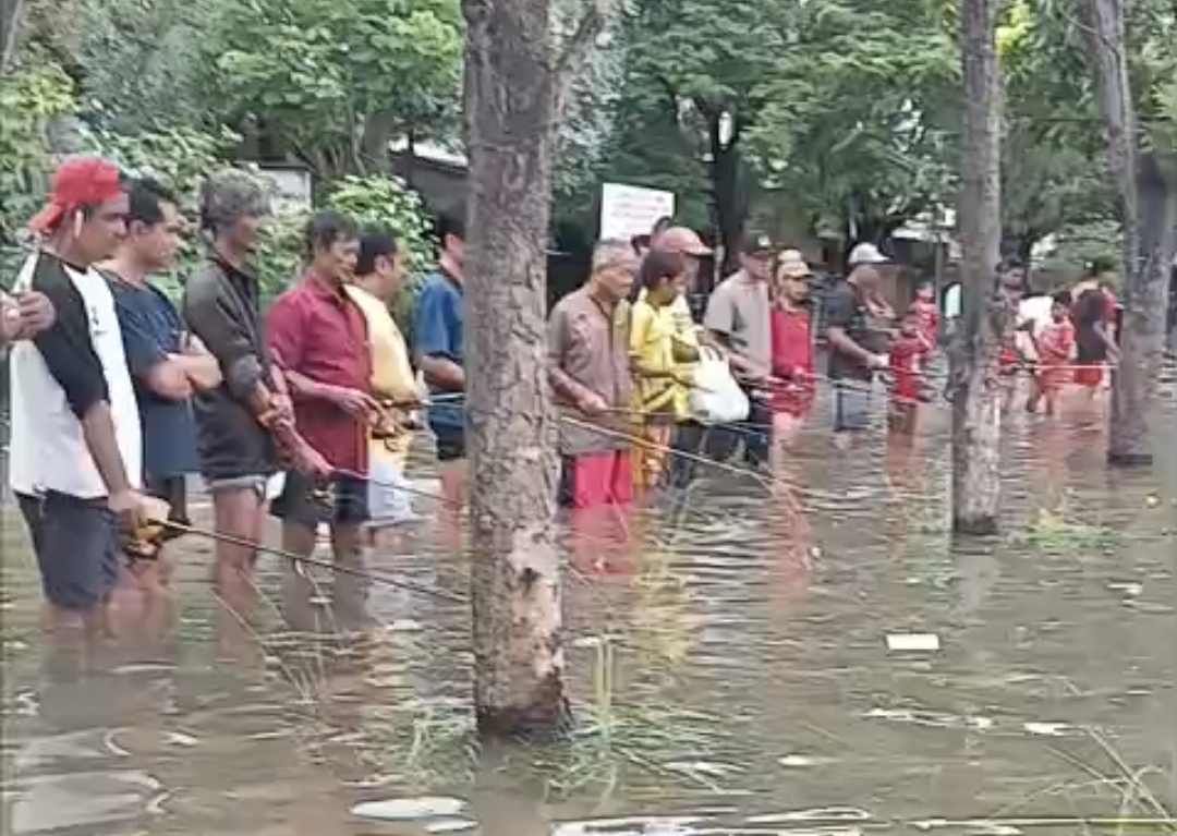 LENTERAINFO.ONLINE | Bekasi – Banjir yang kembali melanda kawasan Perumahan Puri Nirwana Residence (PNR), Desa Sukaraya, Kecamatan Karang Bahagia, Kabupaten Bekasi, menyoroti persoalan klasik buruknya sistem drainase dan pengelolaan lingkungan permukiman. Meski demikian, di tengah genangan air yang merendam rumah warga, muncul pemandangan tak biasa: sejumlah warga memancing ikan di jalanan yang terendam banjir.