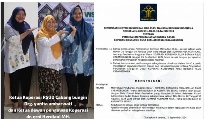 Berdasarkan data yang dihimpun, Direktur RSUD Cabang Bungin, Dr. Erni Herdiani, tercatat sebagai Ketua Dewan Pengawas Koperasi Rusa Berlian, sementara Ketua Koperasi, Drg. Yunita Ambarwati, merupakan pegawai aktif RSUD Cabang Bungin.