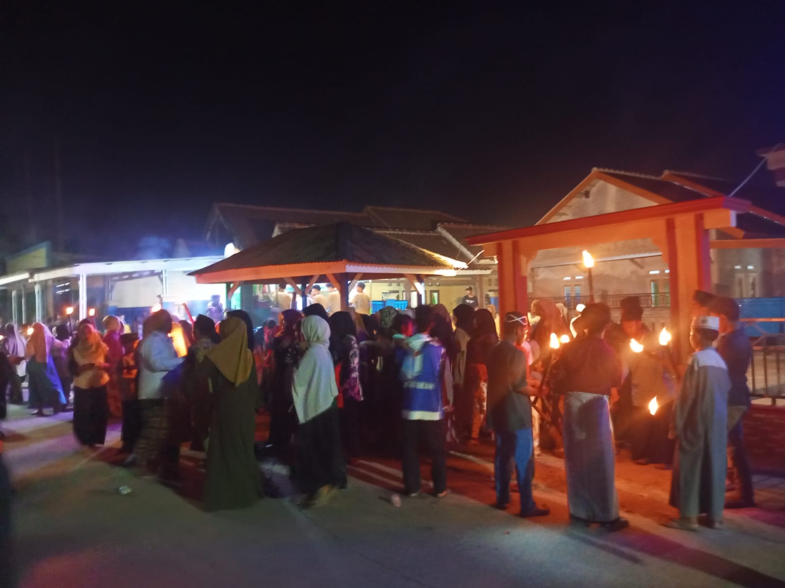 Pawai obor dilaksanakan pada malam hari dengan rute mengelilingi lingkungan desa. Warga tampak antusias membawa obor sambil melantunkan shalawat dan doa, menciptakan suasana religius yang khidmat sekaligus penuh semangat kebersamaan. Kegiatan ini juga menjadi momen mempererat silaturahmi antarwarga serta menumbuhkan semangat gotong royong di tengah masyarakat.