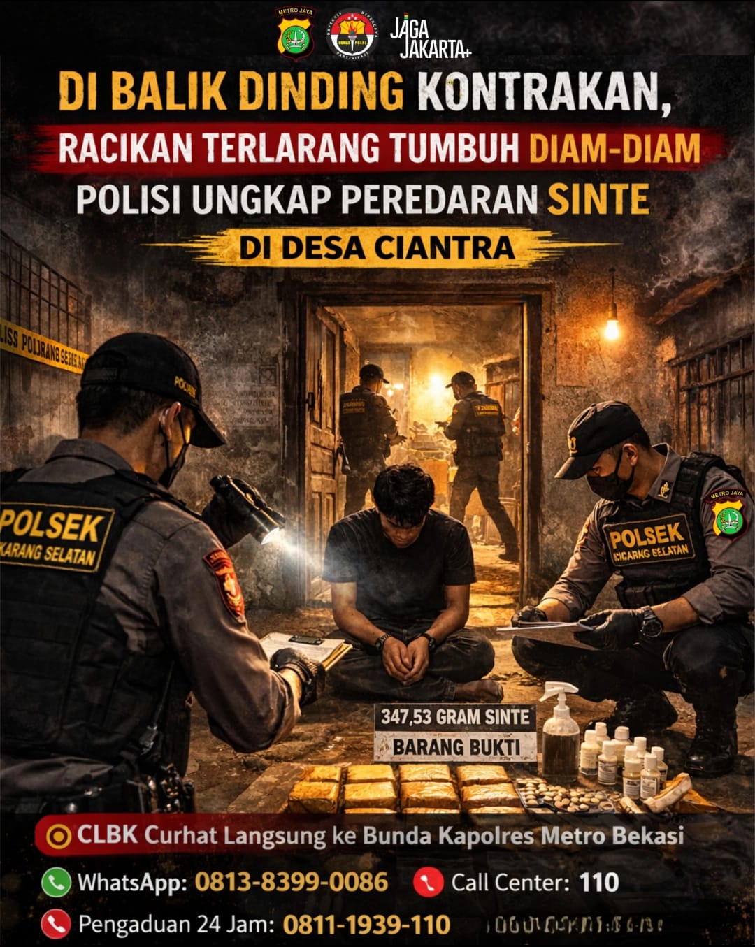 LENTERAINFO.ONLINE | Bekasi -Unit Reskrim Polsek Cikarang Selatan, di bawah jajaran Polres Metro Bekasi, mengungkap dugaan peredaran narkotika golongan I jenis tembakau sintetis di wilayah Desa Ciantra, Kecamatan Cikarang Selatan, Rabu (25/2/2026).