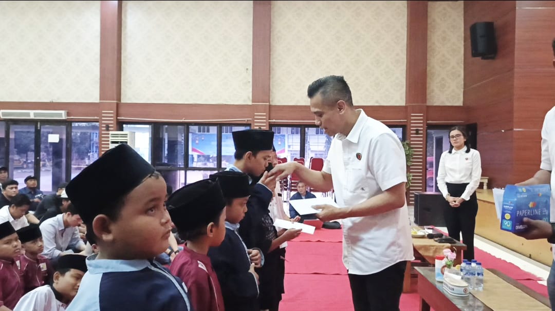 Usai sambutan, acara dilanjutkan dengan pemberian santunan kepada anak yatim piatu sebagai wujud kepedulian sosial dan berbagi kebahagiaan di bulan Ramadan.