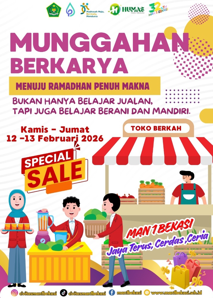 Dengan mengusung slogan “Jaya Terus, Cerdas, Ceria,” MAN 1 Bekasi terus menegaskan perannya sebagai lembaga pendidikan yang progresif, religius, dan visioner menyiapkan generasi muda yang tidak hanya siap menyambut Ramadhan dengan hati bersih, tetapi juga siap menatap masa depan dengan percaya diri dan jiwa wirausaha yang kuat.