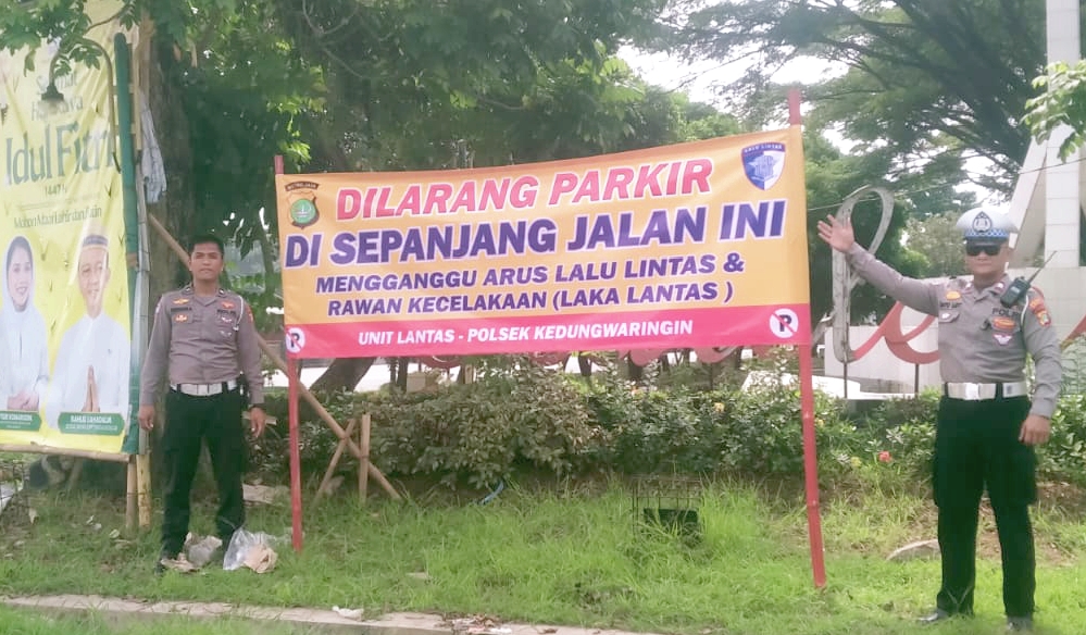 LENTERAINFO.ONLINE | Bekasi — Unit Lalu Lintas Polsek Kedungwaringin mengambil langkah preventif dengan memasang spanduk himbauan larangan parkir di sejumlah titik strategis wilayah hukumnya, Rabu pagi (08/04/2026).